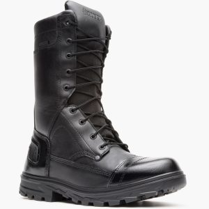 These hard-wearing Rocky® Alpha Force Waterproof Public Service Black Boots are made with black full-grain leather and 1000-denier nylon fabric. Rocky Alpha Force boots are tough work boots built to meet the job at hand. These lightweight. strong fabrics hold up even in the most extreme working conditions.