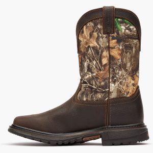 The Rocky Kids’ Ride FLX eight-inch brown and Realtree Camouflage wellington featuring Rocky Waterproof is a great durable western boot for kids that like to go outside and play. Convenient pull straps and resilient material allows any kid to pull their boots on and go. Constructed with a light and flexible construction and padded cushioned insoles. these boots will be so comfortable. your child will never want to take them off! If you’re looking for a reliable boot that will allow your kid to play in comfort all day long. this boot is exactly what you need!