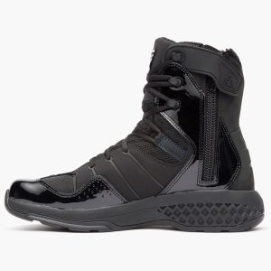The 6mm oval laces give you a more secure fit along with a matte finish black for a stylish look. there is also a side zipper that makes it possible to get these boots on/off easily.