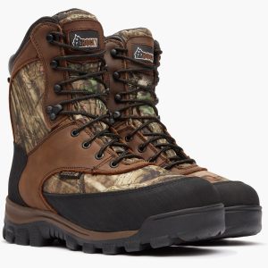 The upper is a combination of full-grain leather and 900-denier nylon for strength and resistance to abrasions. The boots feature Mossy Oak® camouflage.