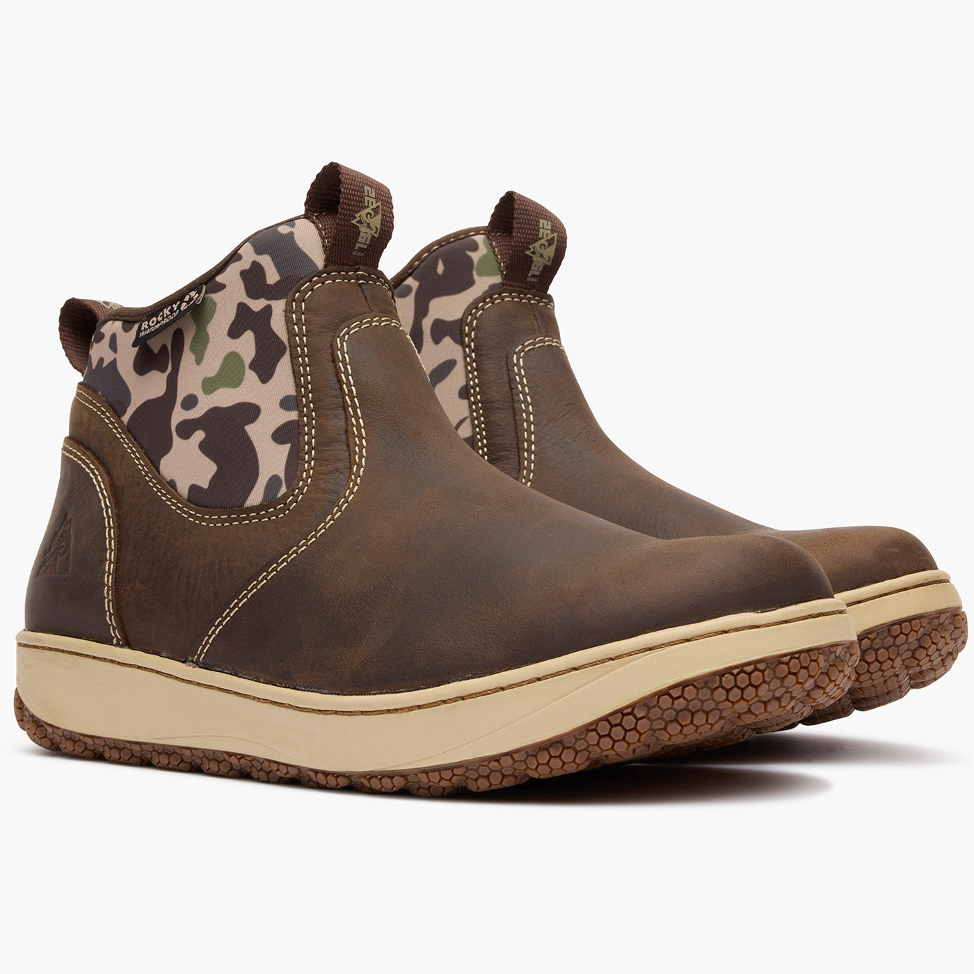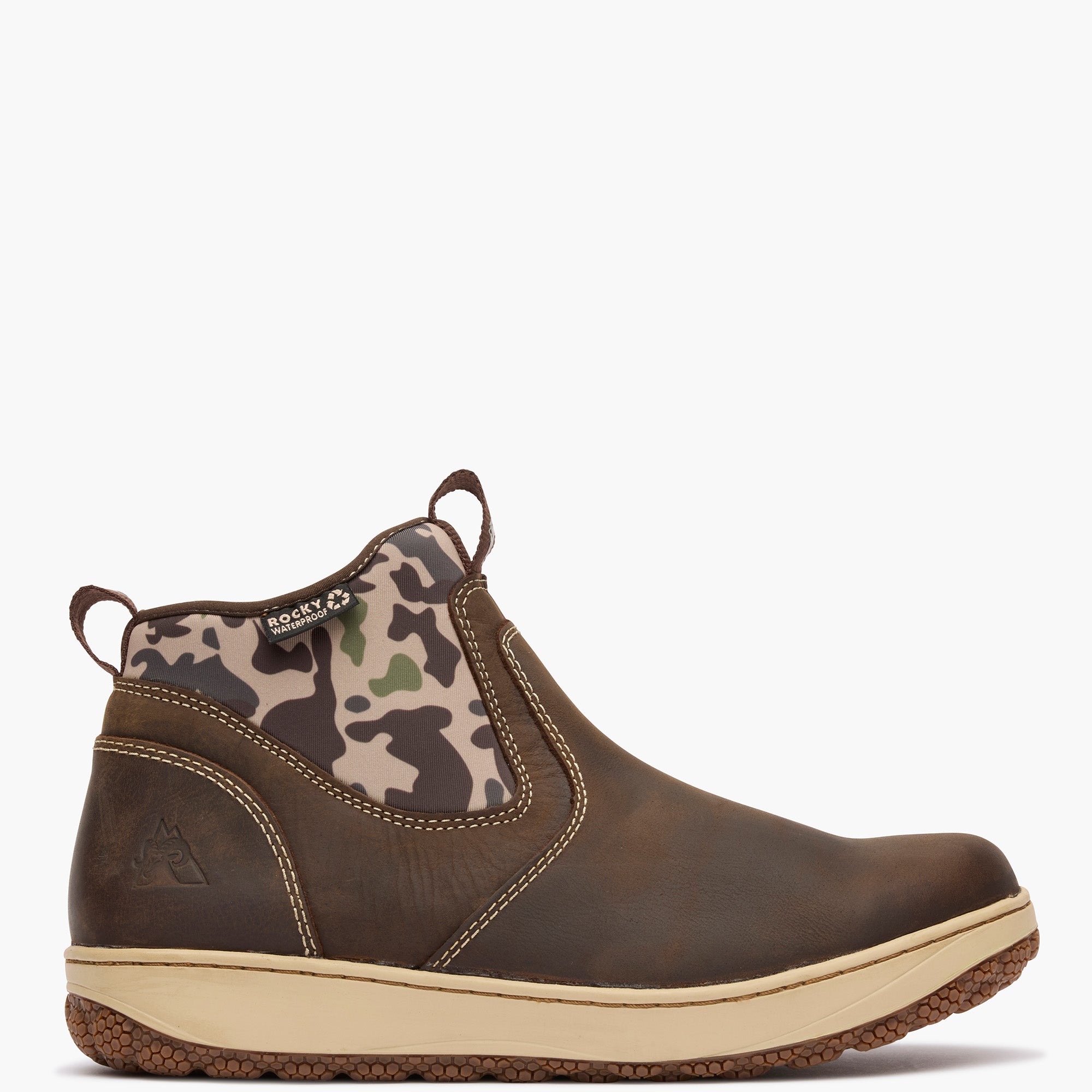 The renowned Dry-Strike collection expands further with this newest addition to the line-up. Crafted from waterproof full-grain leather and featuring a 2mm neoprene half sock. this 6 pull-on shoe boasts our signature non-marking oil- and slip-resisting Dry-Strike outsole. ensuring exceptional traction whether you’re navigating the marina or strolling through town. Complemented by light and flexible cement construction and our Rocky® Air-Port Lite sponge PU footbed with memory foam. this shoe guarantees enduring comfort. Versatile and rugged. it sets a new standard for the evolution of casual footwear.