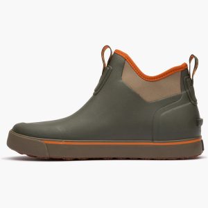 The Rocky Dry-Strike boot is perfect for any outdoor adventure. The waterproof upper with neoprene bootie construction keeps your feet dry whether you’re working on the boat or walking through puddles. The unique ultra-slip resisting rubber outsole will keep you safe while the Energy XLX footbed will keep you comfortable. Easily slip on using the nylon pull loops on the front and back. Built to be extra tough. these green and orange lightweight rubber boots will handle anything all day long.