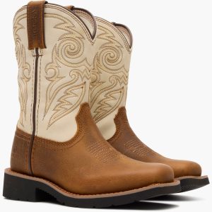 The 8 Rocky® Kids’ MonoCrepe brings a new meaning to lightweight. Built on our proprietary lightweight oil & slip resisting Rocky® MonoCrepe outsole and our Rocky® Air-Port Lite® sponge PU footbed with memory foam. this square toe boot keeps little feet happy and energized. Made to last with the help of a double stitch flex welt construction and a fiberglass shank for added support giving kids a stable platform that helps reduce foot fatigue and discomfort for all day play.