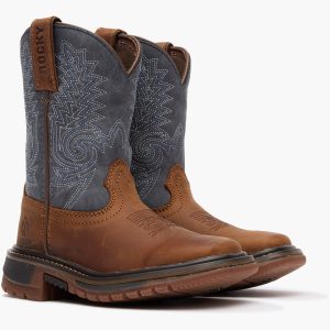 The Rocky Kids’ Ride FLX eight-inch denim and brown wellington is a great durable western boot for kids that like to go outside and play. Convenient pull straps and resilient material allows any kid to pull their boots on and go. Constructed with a light and flexible construction and padded cushioned insoles. these boots will be so comfortable. your child will never want to take them off! If you’re looking for a reliable boot that will allow your kid to play in comfort all day long. this boot is exactly what you need!