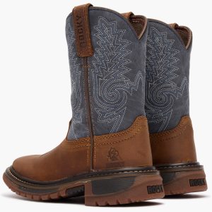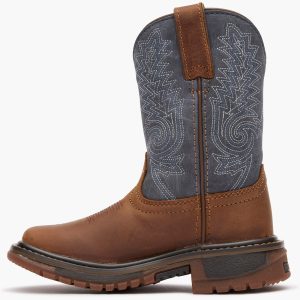 The Rocky Kids’ Ride FLX eight-inch denim and brown wellington is a great durable western boot for kids that like to go outside and play. Convenient pull straps and resilient material allows any kid to pull their boots on and go. Constructed with a light and flexible construction and padded cushioned insoles. these boots will be so comfortable. your child will never want to take them off! If you’re looking for a reliable boot that will allow your kid to play in comfort all day long. this boot is exactly what you need!