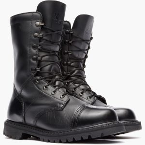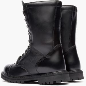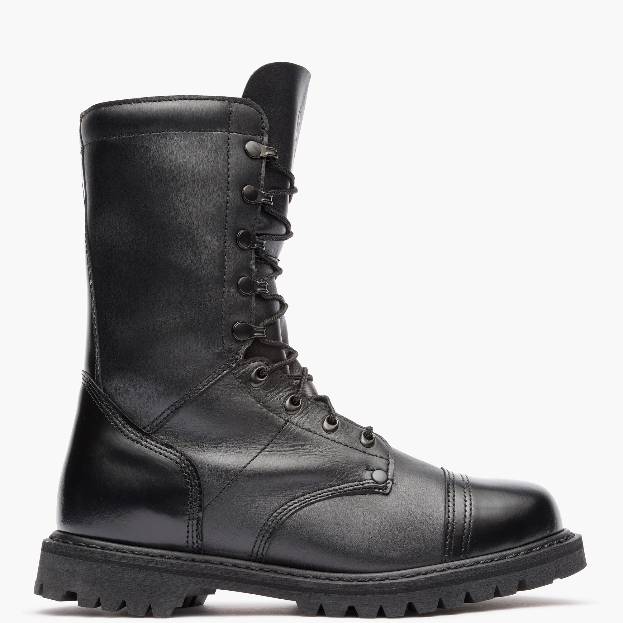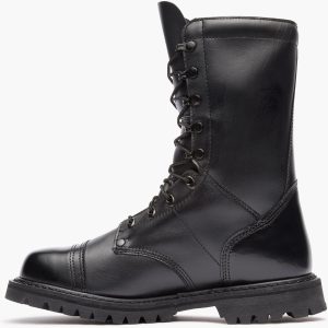 This 10-in boot is a Rocky Classic. now built with a speed lacing system with NATO hooks. The upper has been built from premium full-grain black leather. Keep your boots in tiptop shape with a polishable toe. The Goodyear welt construction gives these boots a longer life with the ability to be repaired with no trouble and revert to their original hardiness. The contoured EVA footbed provides cushioning that will pacify your achy feet and will make standing a much more comfortable experience. The black. rubber lug outsole provides traction and is great for traversing on uneven terrain.