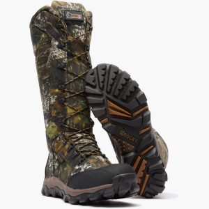 The upper is made with 16 inches of Cordura® fabric that is covered in Mossy Oak Break-Up® camo. This fabric is rugged enough to be able to withstand tough conditions. but it’s also lightweight. On both the toe and heel. this Rocky Lynx boot offers abrasion protection.