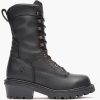 The Rams Horn Logger is a work boot built to withstand the world’s toughest environment: your job site. Designed for maximum comfort. safety. and durability. this 9 logger is packed with features. Oil & slip resisting rubber outsoles with a flexible direct-attached PU midsole combined with our revolutionary Rocky® Rebound cushioning technology guarantees comfort that will last. For strength and added protection this logger is built with a durable triple-ribbed steel shank. 1 Year Vapor Pass breathable recycled membrane waterproofing keeps your feet dry without trapping perspiration in. This 9 boot with a 2 heel meets ASTM 2413 protective toe and electrical hazard standards.