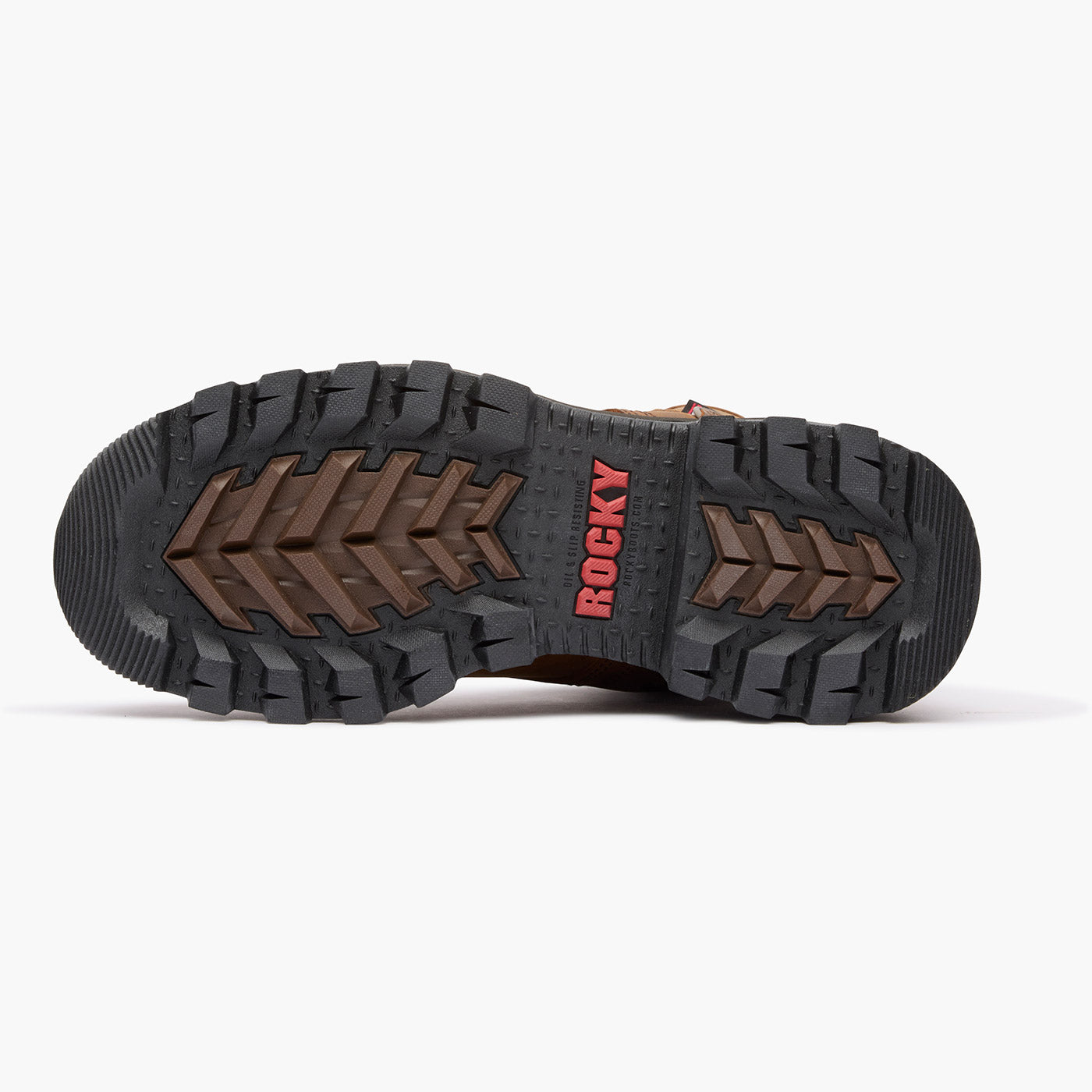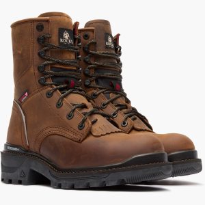The Rams Horn Logger is a work boot built to withstand the world’s toughest environment: your job site. Designed for maximum comfort. safety. and durability. this 9 logger is packed with features. Oil & slip resisting rubber outsoles with a flexible direct-attached PU midsole combined with our revolutionary Rocky® Rebound cushioning technology guarantees comfort that will last. For strength and added protection this logger is built with a durable triple-ribbed steel shank. 1 Year Vapor Pass breathable recycled membrane waterproofing keeps your feet dry without trapping perspiration in. This 9 boot with a 2 heel meets ASTM 2413 protective toe and electrical hazard standards.