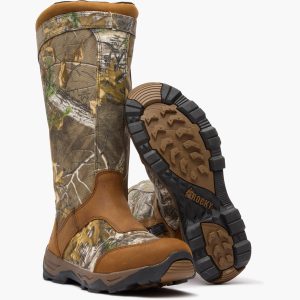 Made of brown full-grain leather and 900-denier nylon. this 17-inch boot has the height and toughness you want. The nylon features Realtree Xtra® camouflage. making it a great hunting boot.