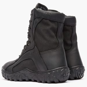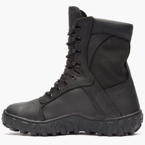 The Rocky® S2V Tactical Military Boots are the ultimate combat boots. This footwear is the top choice for all military personal because they are built for quick maneuvers and fast-paced action. The flash- and water-resistant leather is geared to protect your feet from quick flashes and rope burn. The boots also boast 1.000-Denier nylon technology in the sides and panels with a coating that serves as a flame retardant. These black boots can easily handle wet and cold conditions thanks to the addition of a Berry compliant components waterproof membrane. and 600 grams of thermal Insulation. To maximize comfort. the military boots also have triple-stitched uppers and proprietary high-walled Vibram® soles. along with a perforated Air-Port cushion footbed and PU midsoles. They are outfitted with an Aegis® Microbe Shield to prevent bacteria and fungus growth. Made in the USA. the Rocky S2V Tactical Military Boots are Berry Compliant. Eight inches in height.