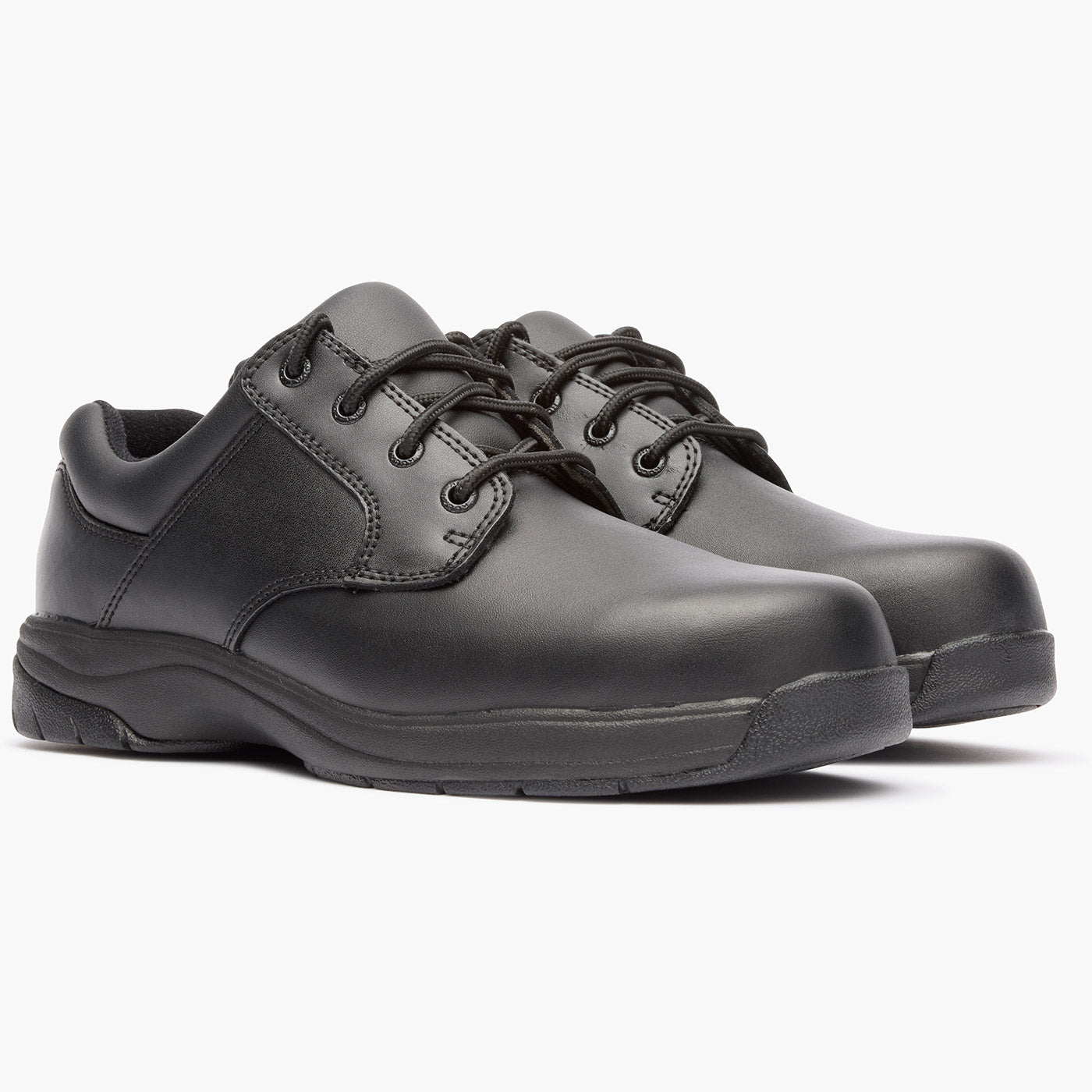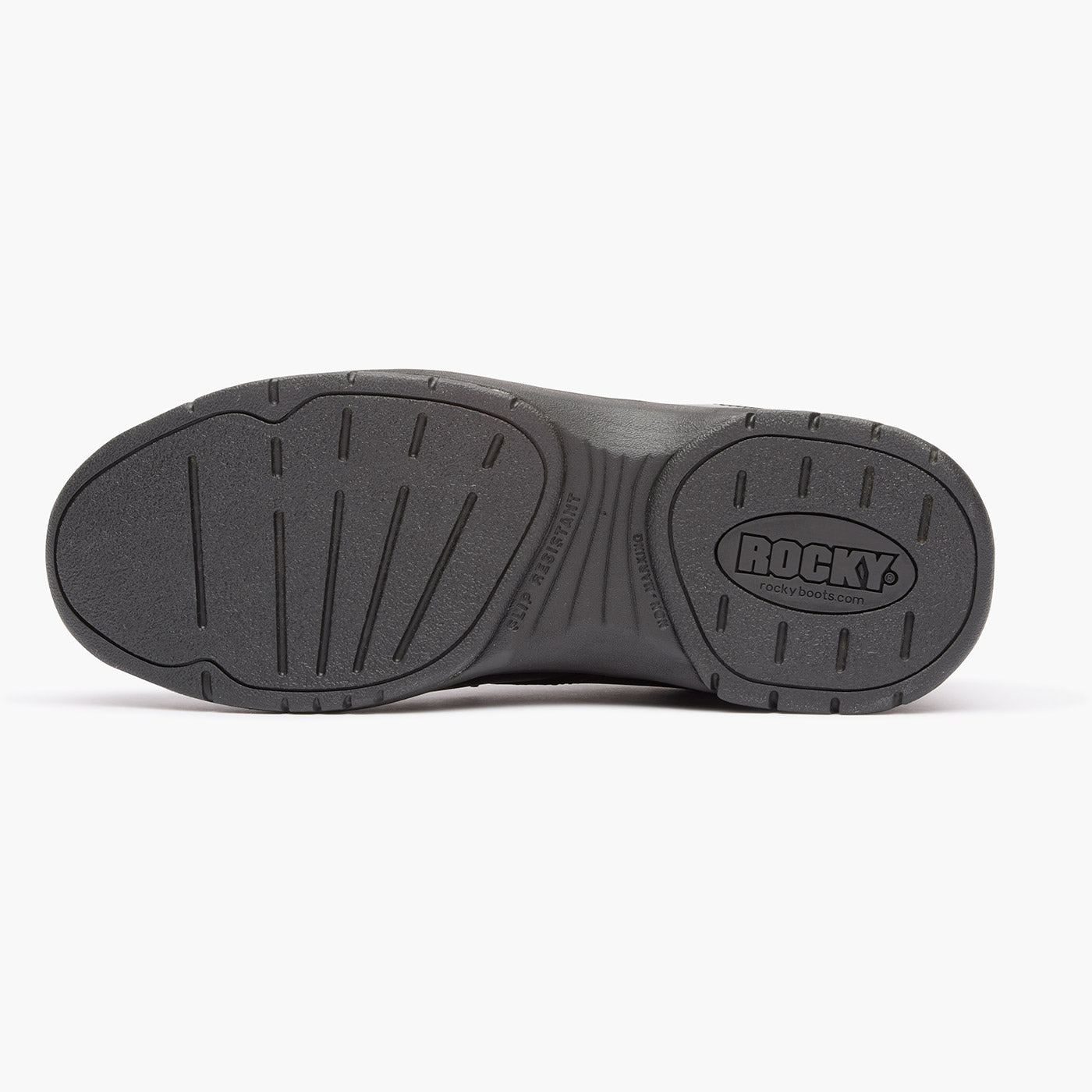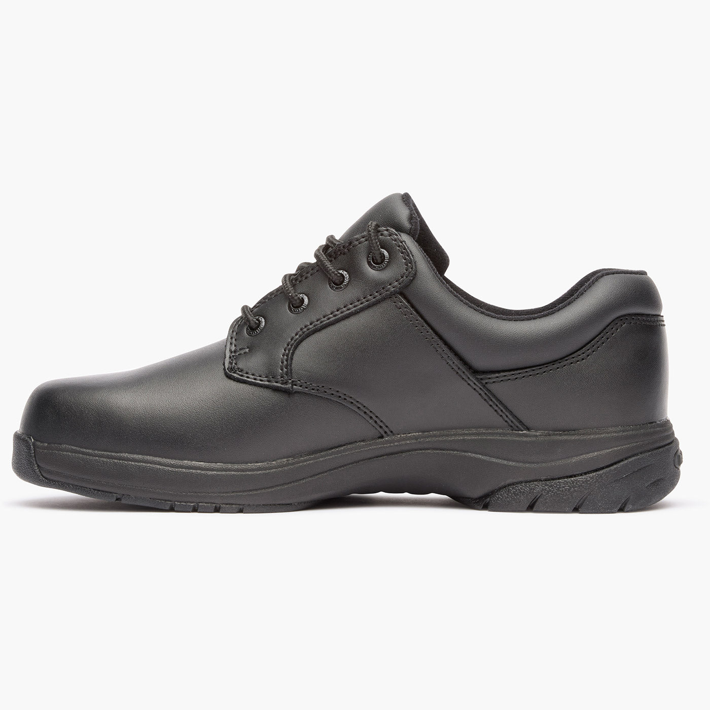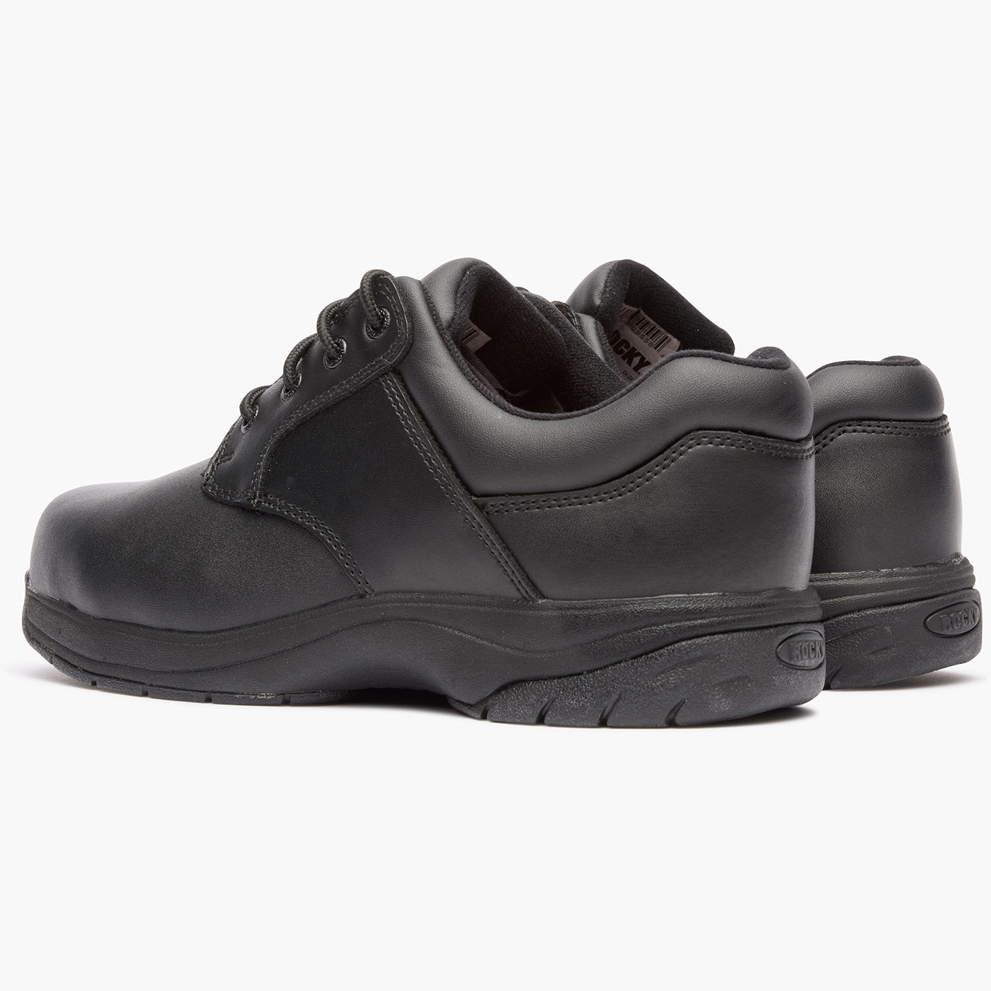 This black oxford has a Rocky 911 SlipStop outsole. The outsole offers you oil and slip resistance. and stitching around the toe and heel enhances the public service shoe’s durability.