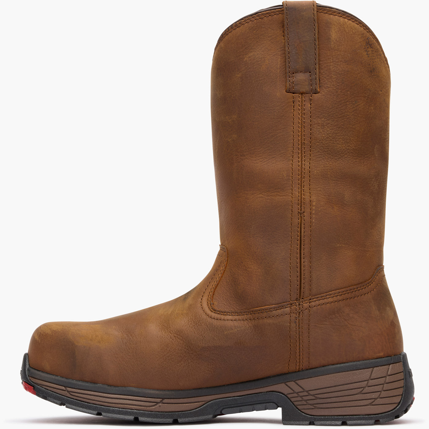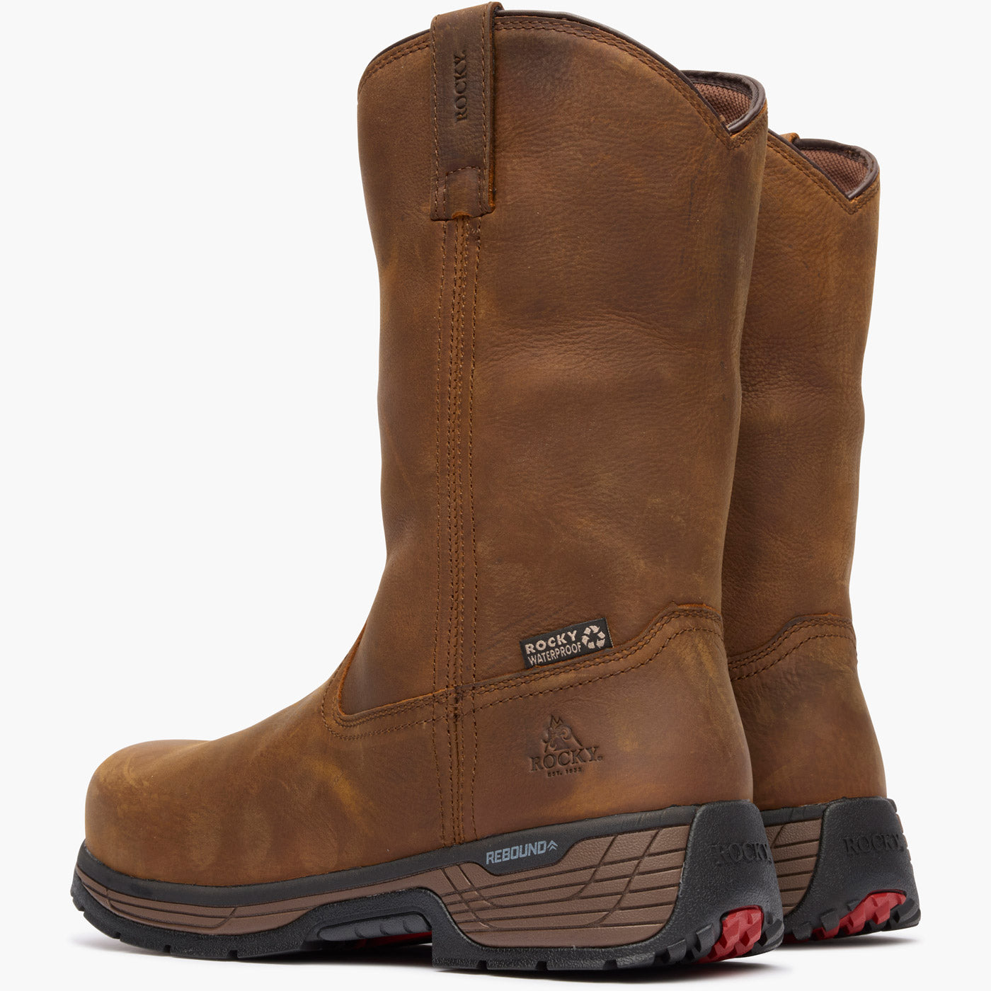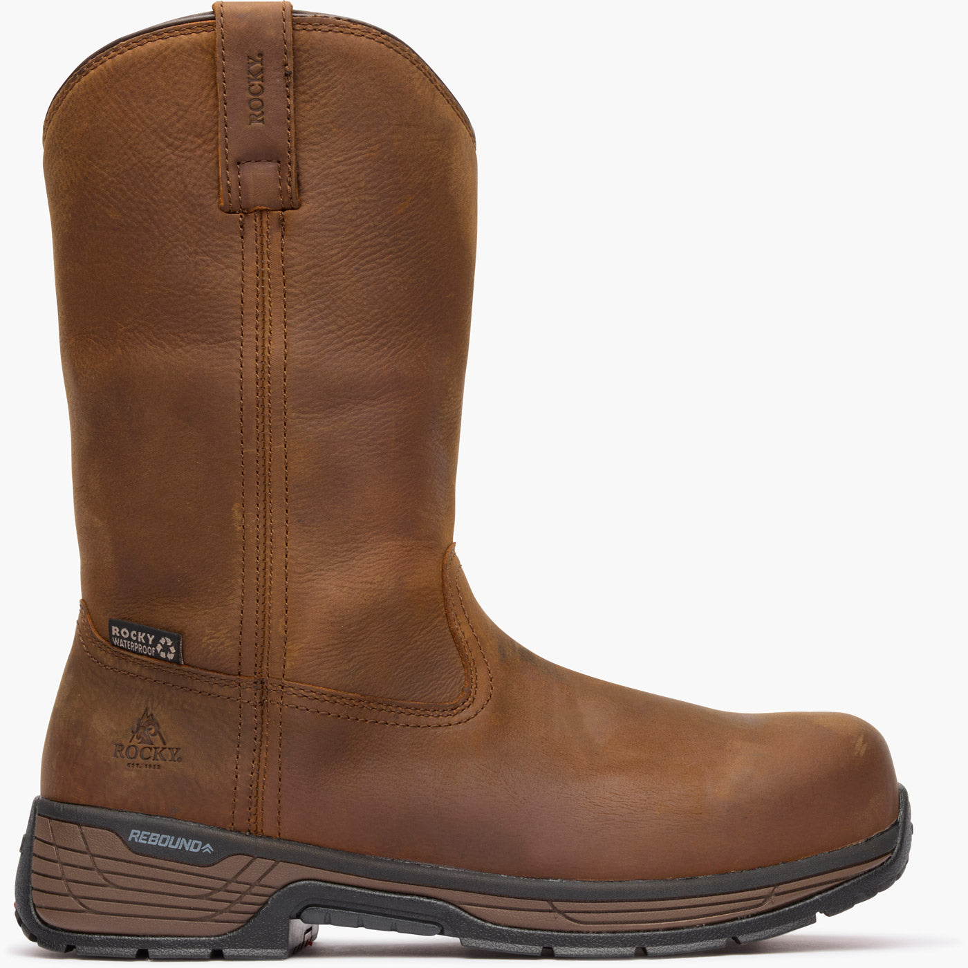Add some flexibility into your workday. Our Treadflex collection is designed to prioritize both comfort and safety. This 11 composite toe pull-on work boot offers a variety of key features including a light & flexible cement construction and a focused surface contact oil & slip resisting rubber outsole allowing for traction that you can trust. Crafted with a rebound EVA midsole and reinforced with a fiberglass shank. this boot offers stability and durability but also maintains its flexible form. Our Rocky® Air-Port Lite® sponge PU footbed with memory foam for long-lasting comfort and our guaranteed Recycled Rocky Waterproof construction so your feet stay dry when conditions demand it most. Rest assured. this boot meets ASTM F2413 protective toe classification and electrical hazard standard. providing an extra layer of safety. Elevate your work experience with the unbeatable combination of comfort. durability. and protection offered by our Treadflex collection.