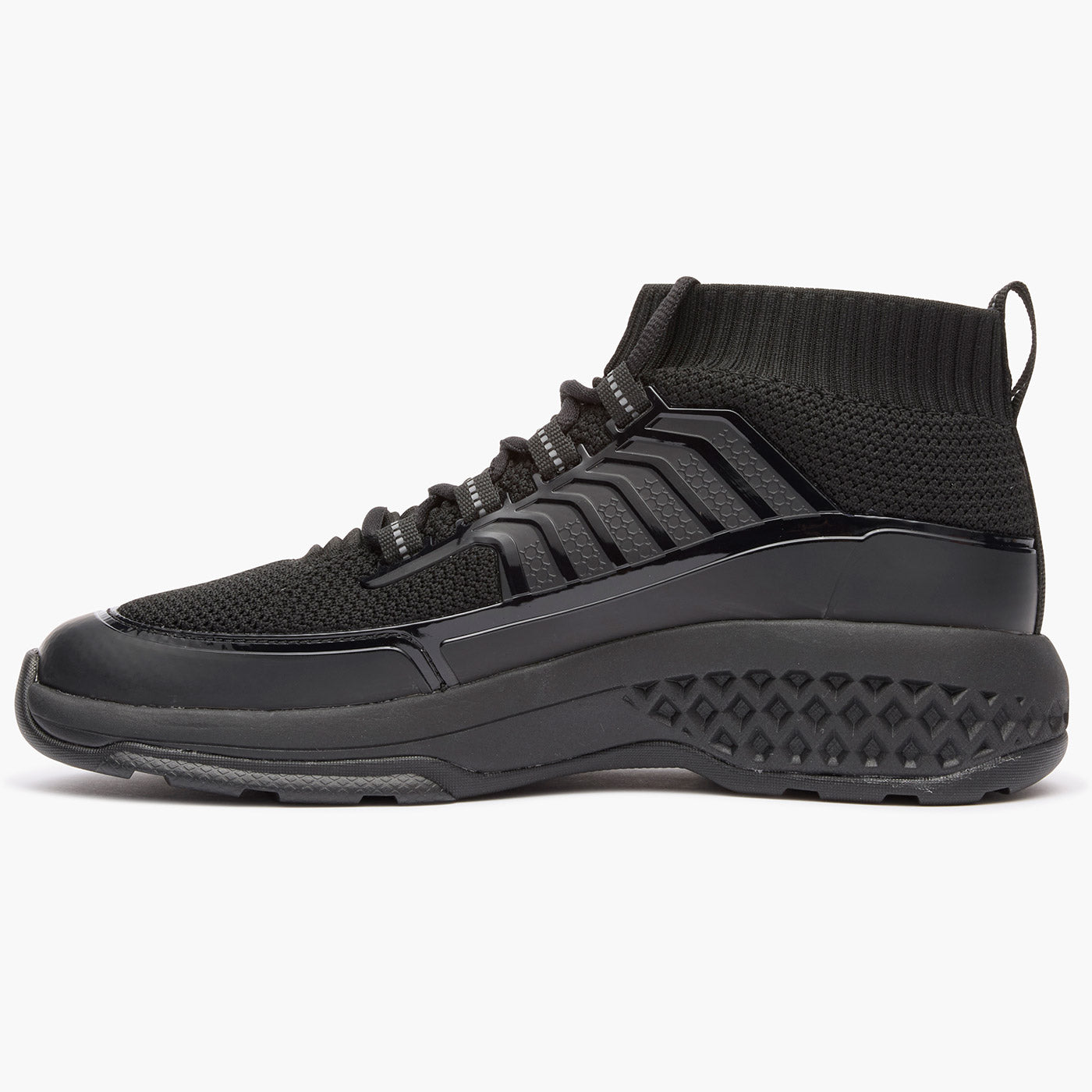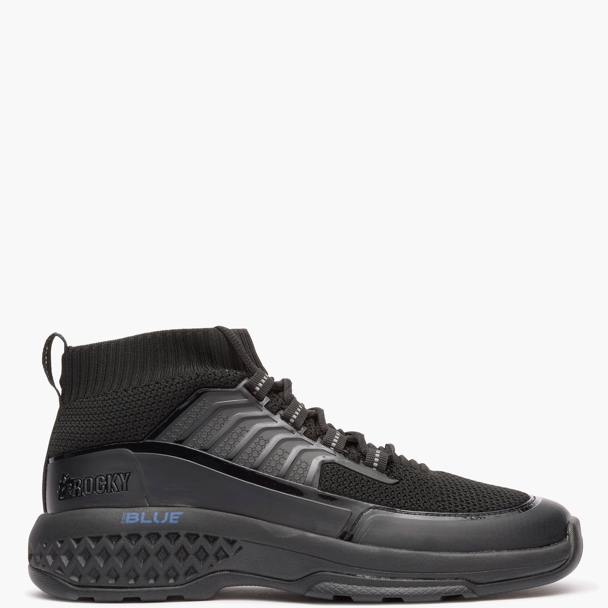 This non-metallic slip on or lace up public service shoe is constructed with a highly breathable tactical grade knit upper. high-abrasion TPU overlays for added structure. stability. and support and reflective accents on the webbing.