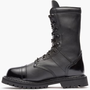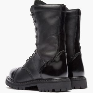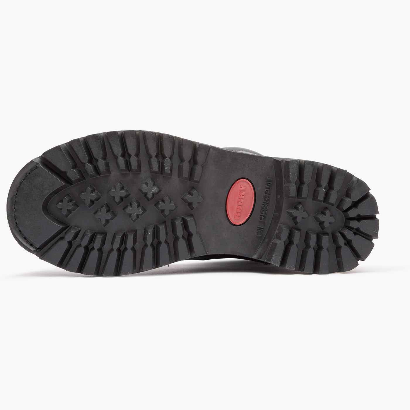This 10-in boot is a Rocky Classic. now built with a speed lacing system with NATO hooks. The upper has been built from premium full-grain black leather. Keep your boots in tiptop shape with a polishable toe. The Goodyear welt construction gives these boots a longer life with the ability to be repaired with no trouble and revert to their original hardiness. The contoured EVA footbed provides cushioning that will pacify your achy feet and will make standing a much more comfortable experience. The black. rubber lug outsole provides traction and is great for traversing on uneven terrain.